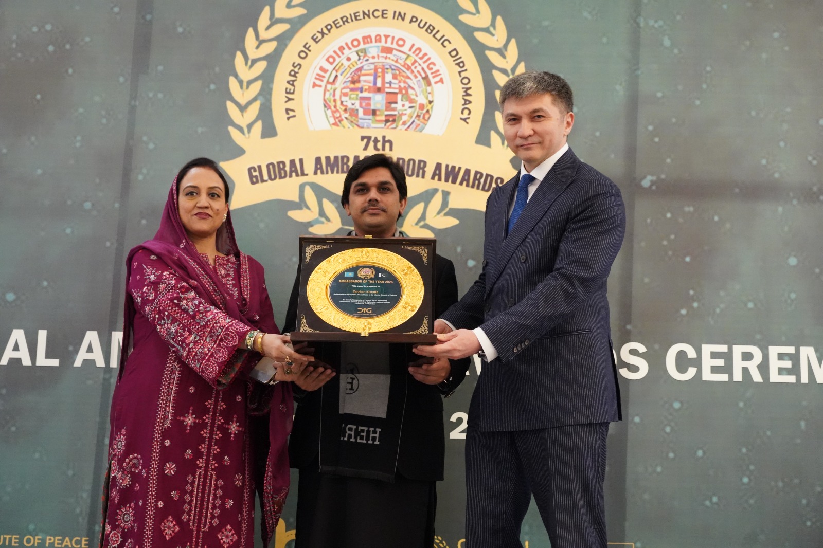 Islamabad: At the seventh edition of the Global Ambassador Awards, hosted by the Diplomatic Insight Group (DIG), the Ambassador of Kazakhstan to Pakistan, Yerzhan Kistafin, was honored with the title of “Ambassador of the Year.”